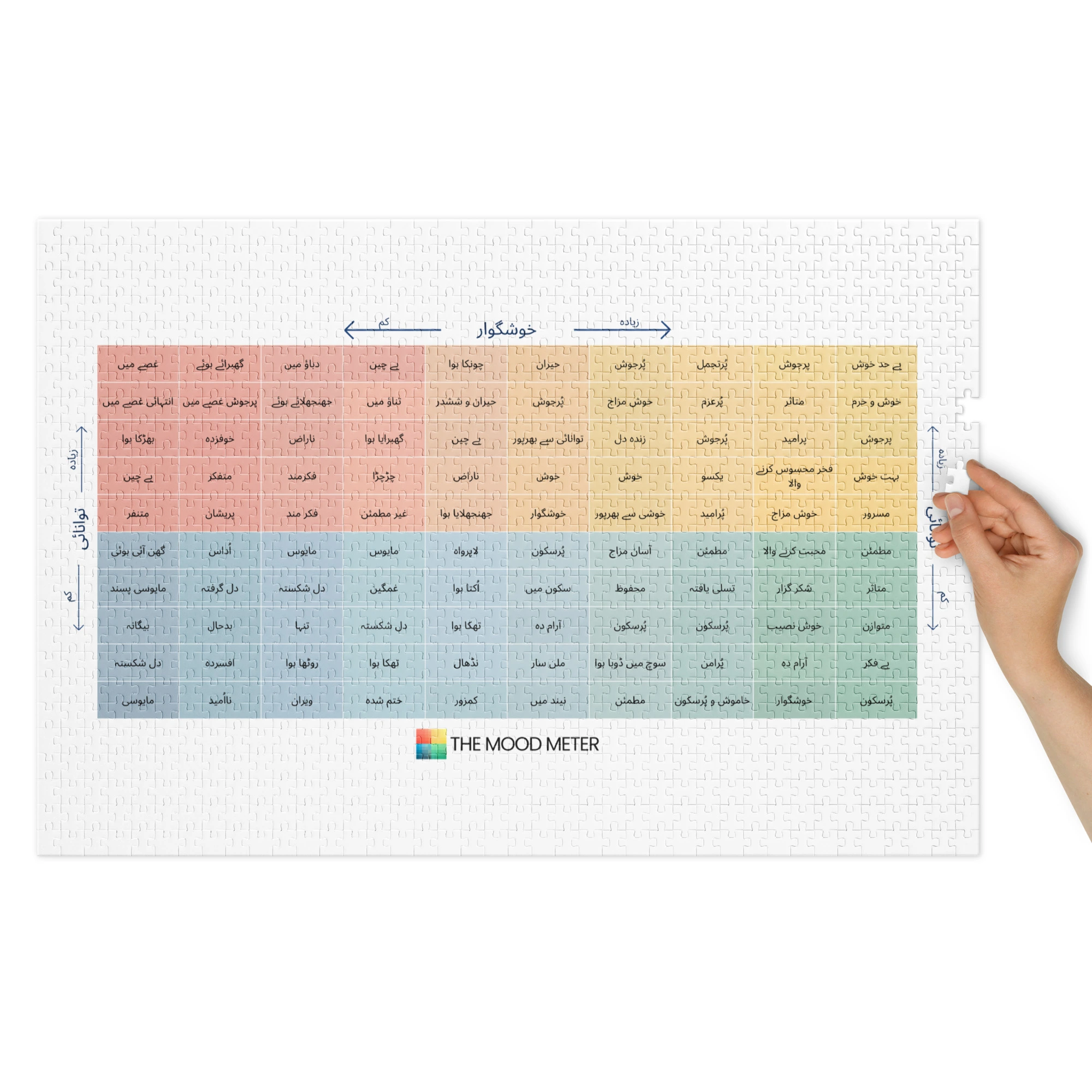موڈ میٹر جِگسا پزل ٹِن کے ساتھ – اردو ورژن صرف ایک عام پزل نہیں بلکہ ایک مکمل تجربہ ہے جو ذہنی سکون، توجہ اور تخلیقی سوچ کو یکجا کرتا ہے۔ آج کے تیز رفتار اور ڈیجیٹل دور میں، جہاں اسکرین ٹائم مسلسل بڑھ رہا ہے، ایسے لمحات بہت قیمتی ہو جاتے ہیں جن میں انسان خود کو پرسکون اور یکسو محسوس کرے۔ یہ جِگسا پزل اسی ضرورت کو مدنظر رکھتے ہوئے تیار کیا گیا ہے، تاکہ آپ تنہائی میں بھی لطف اٹھا سکیں اور دوستوں یا خاندان کے ساتھ بھی معیاری وقت گزار سکیں۔