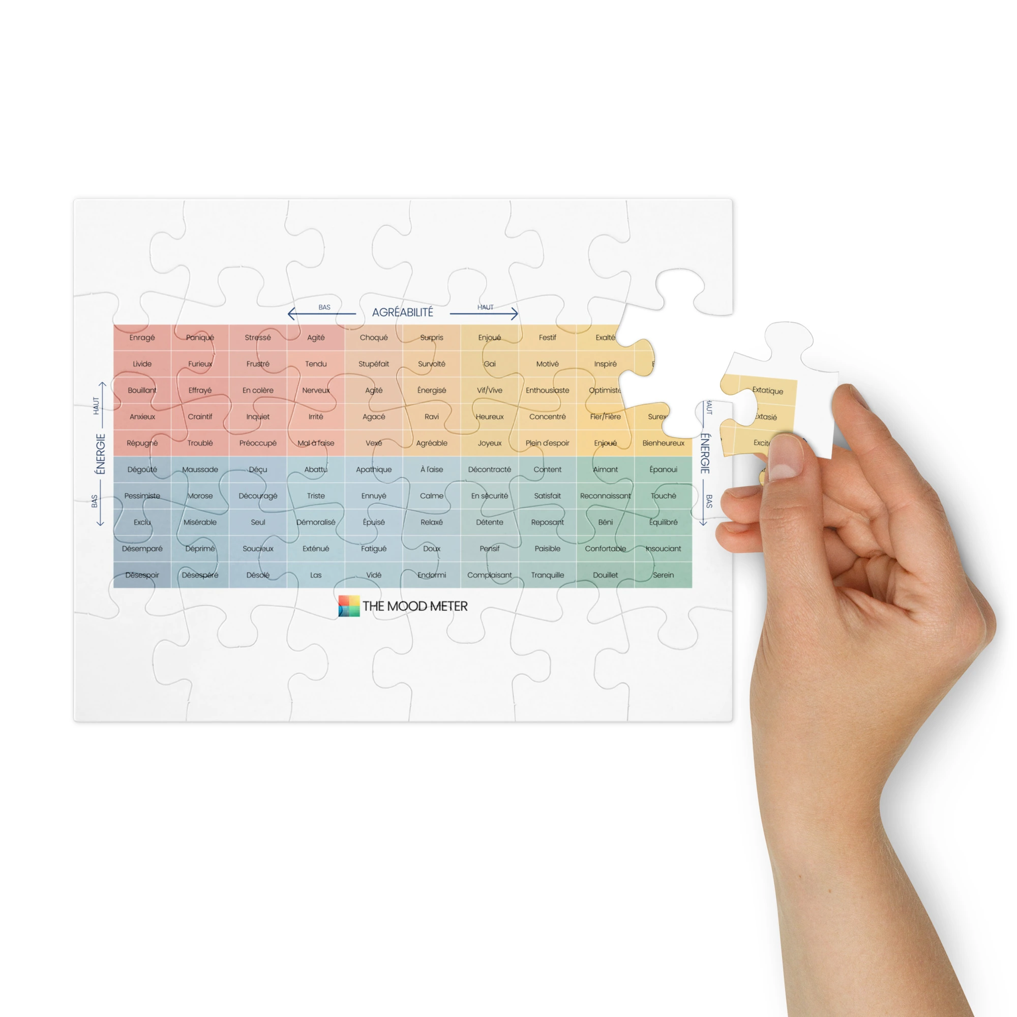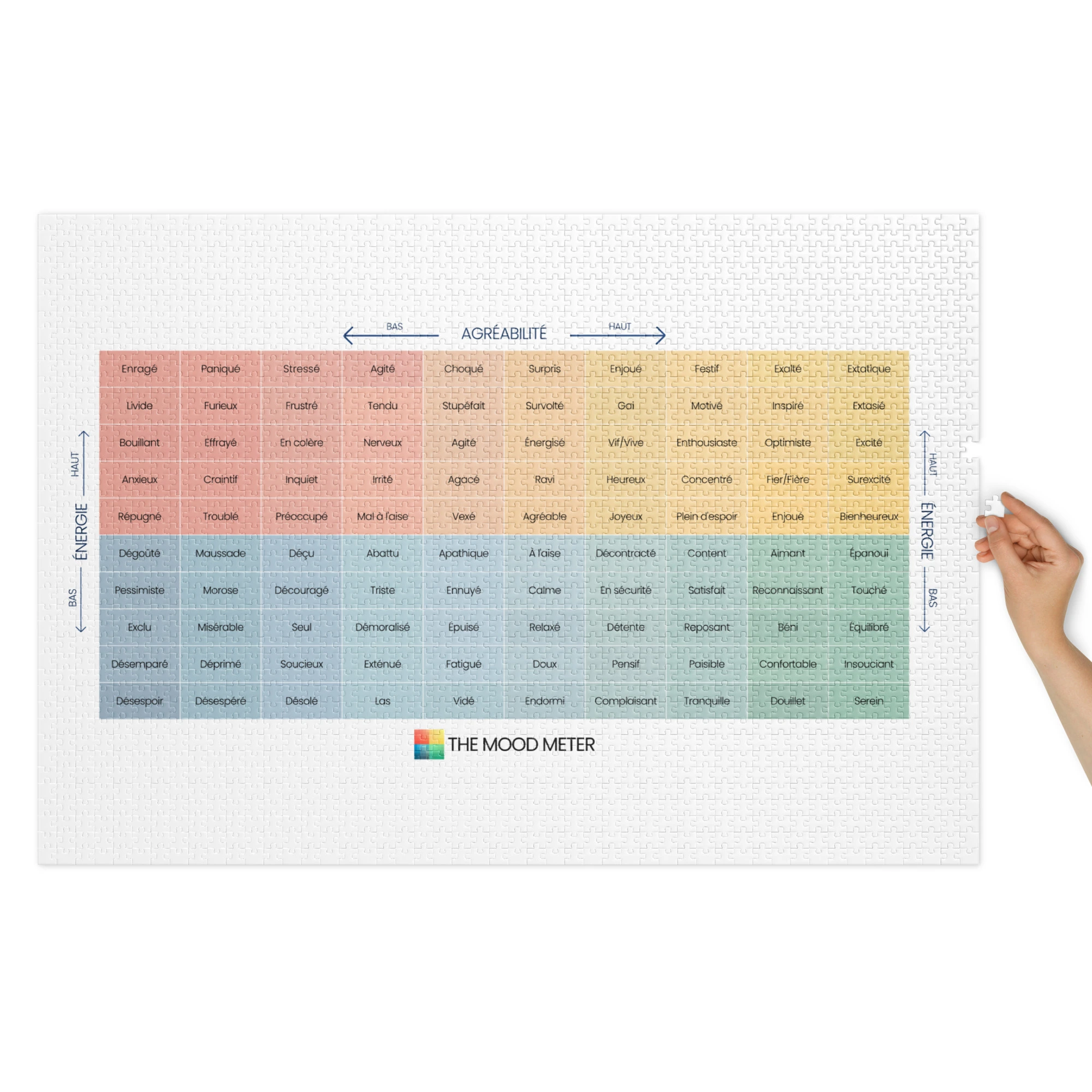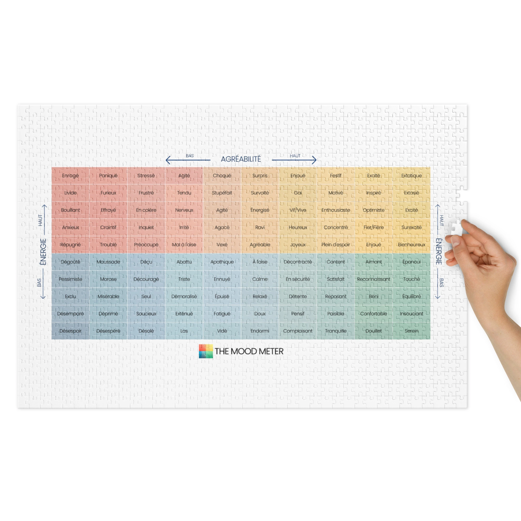 Assembler un puzzle est une invitation à ralentir, à se concentrer et à apaiser son esprit. Ce modèle du Mood Meter – Édition Française transforme l’exercice en moment de bien-être : il stimule la mémoire, la logique et la patience tout en procurant un véritable sentiment de satisfaction.