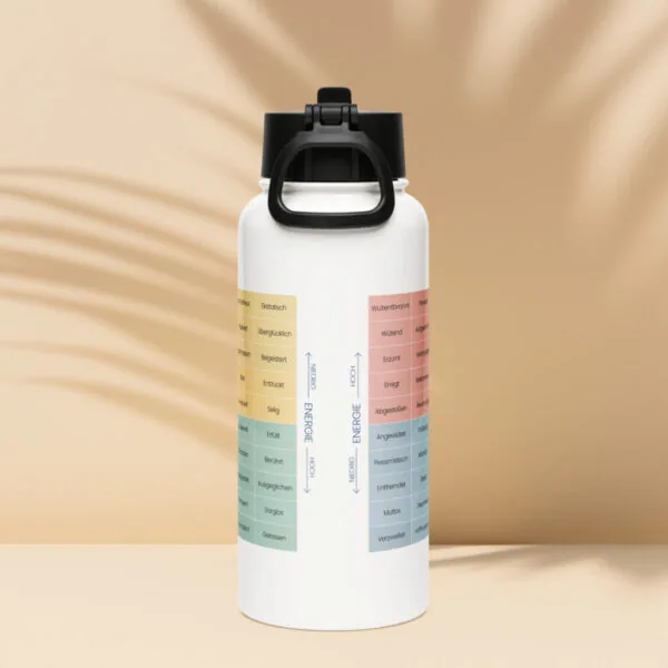 Mood Meter Edelstahl-Wasserflasche mit Trinkhalmdeckel – Deutsche Ausgabe