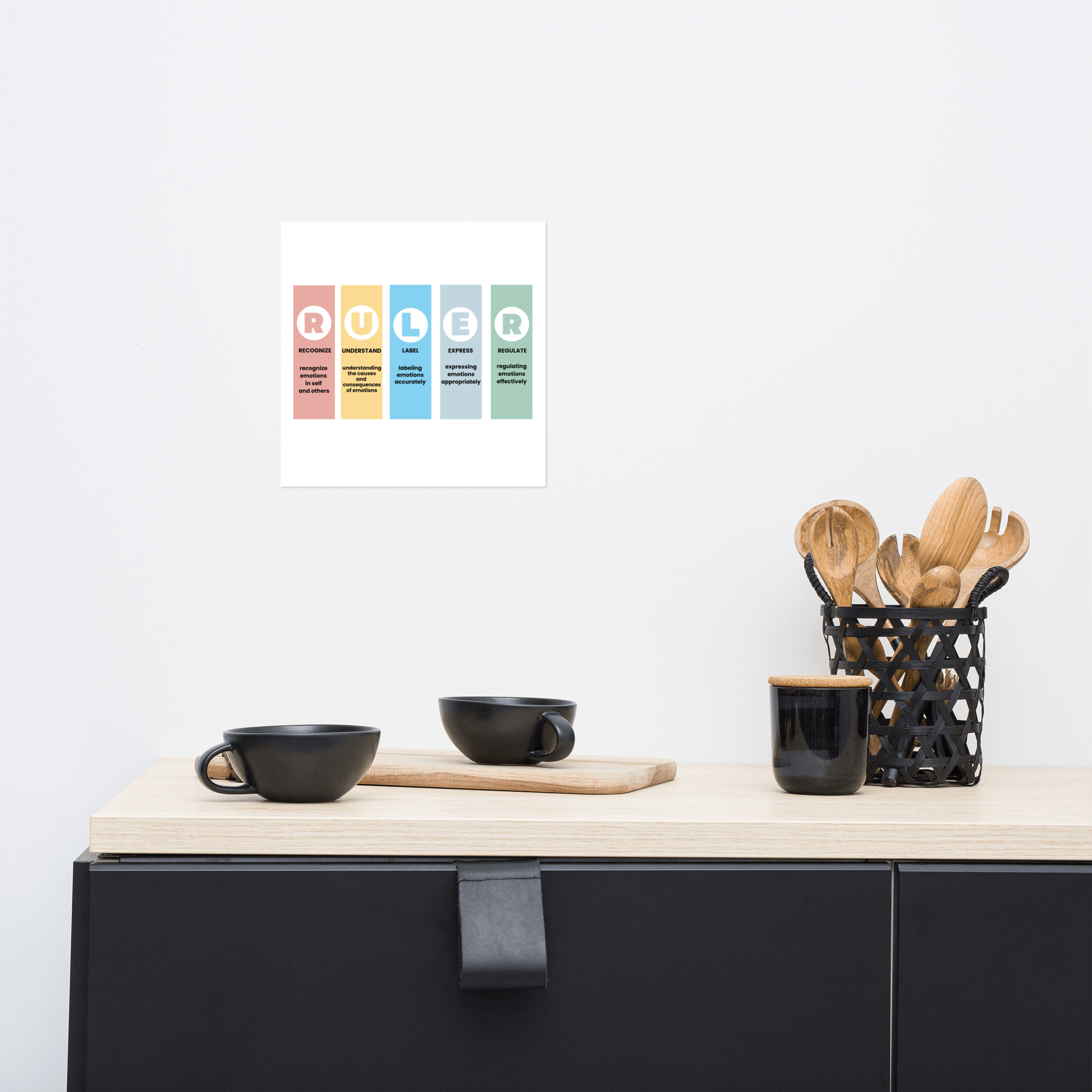 Every glance reminds you of the RULER principles, helping you pause, reflect, and reconnect with your emotions throughout the day. It’s a subtle yet powerful way to bring emotional intelligence into your physical environment.
