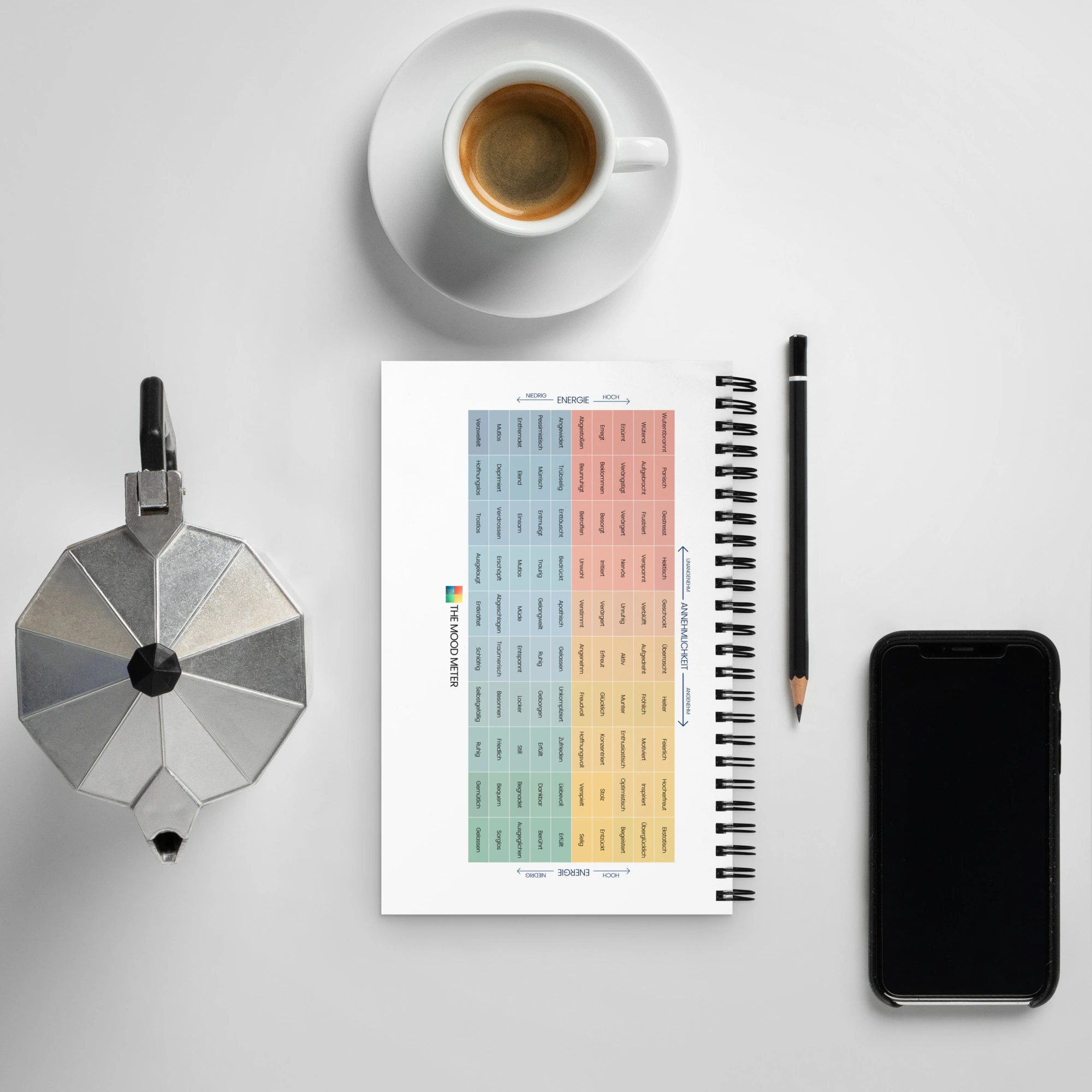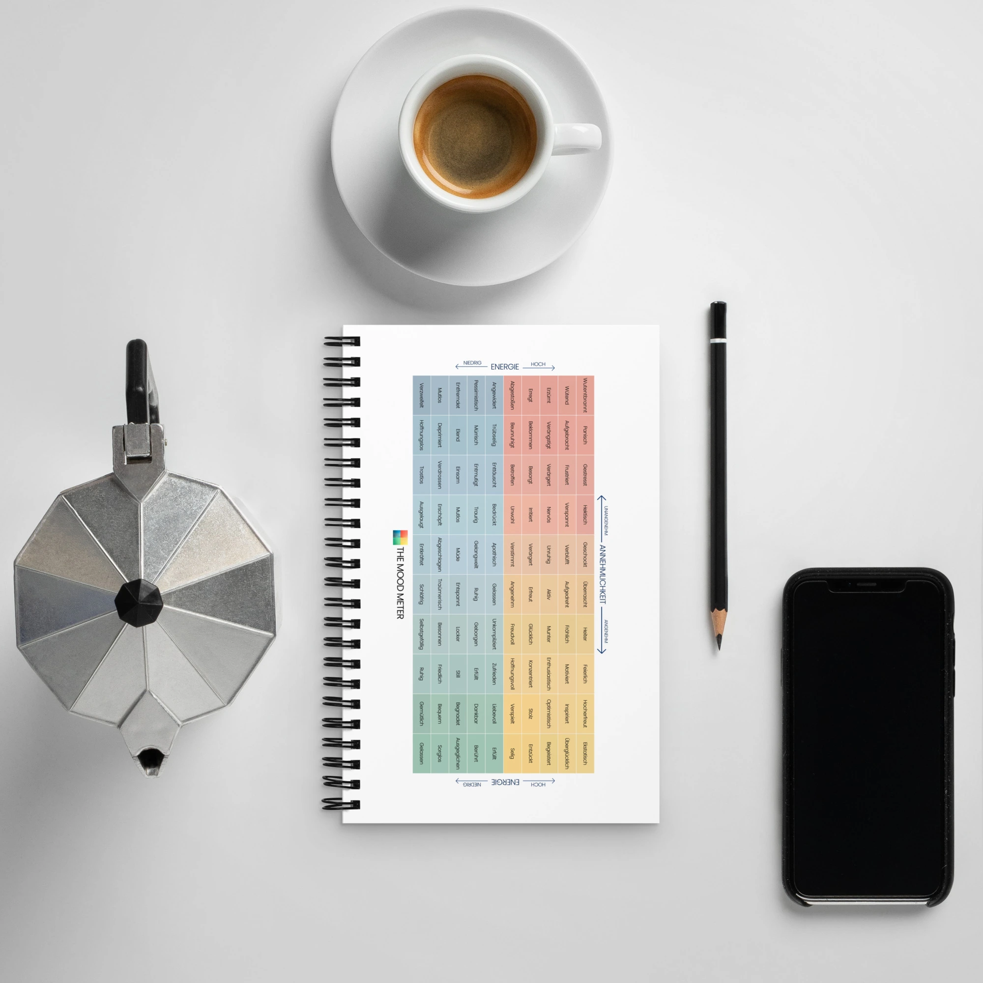 Spiralgebundenes Mood Meter Notizbuch – Deutsche Ausgabe
