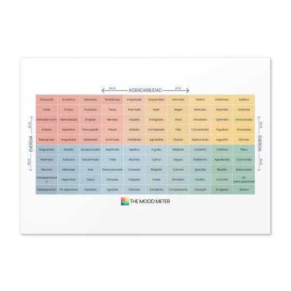 También puedes acompañarla con los Stickers sin burbujas del Medidor de Estado de Ánimo en Español, ideales para decorar cuadernos, laptops o cualquier superficie, y mantener siempre presente la importancia de reconocer y expresar cómo te sientes.