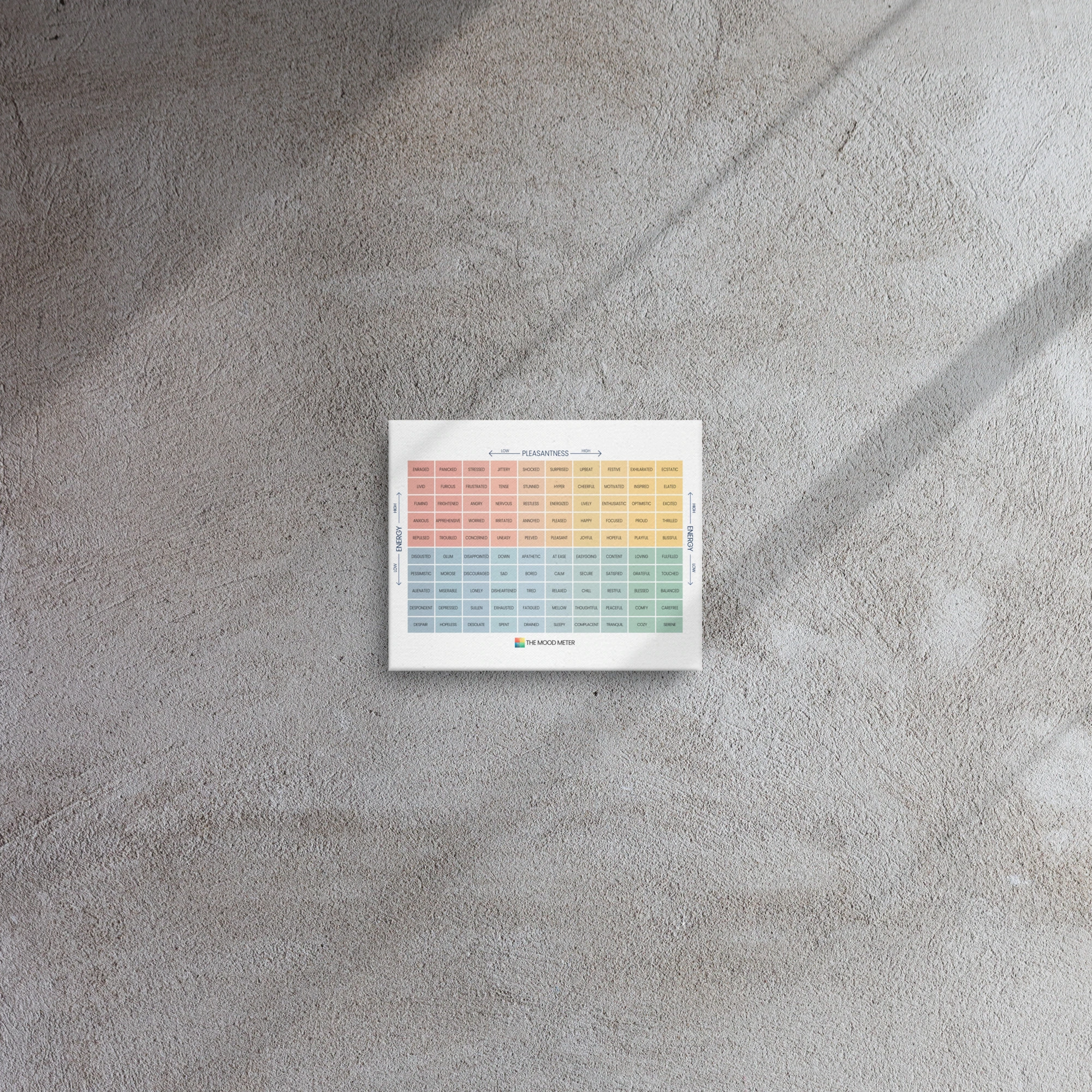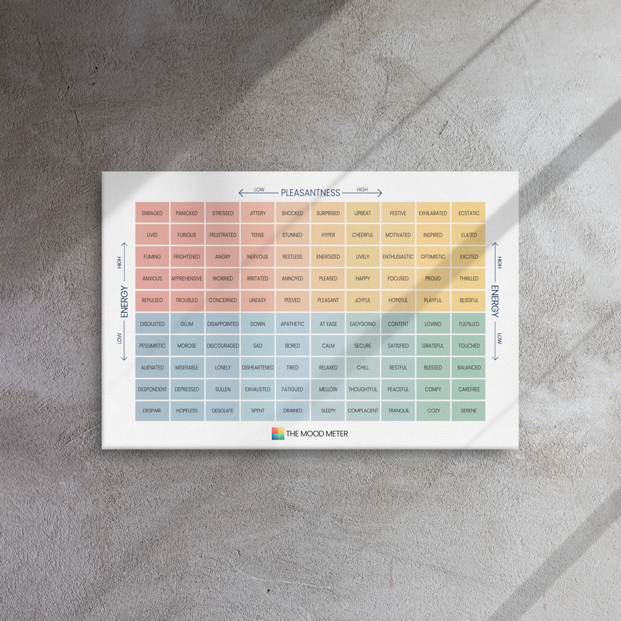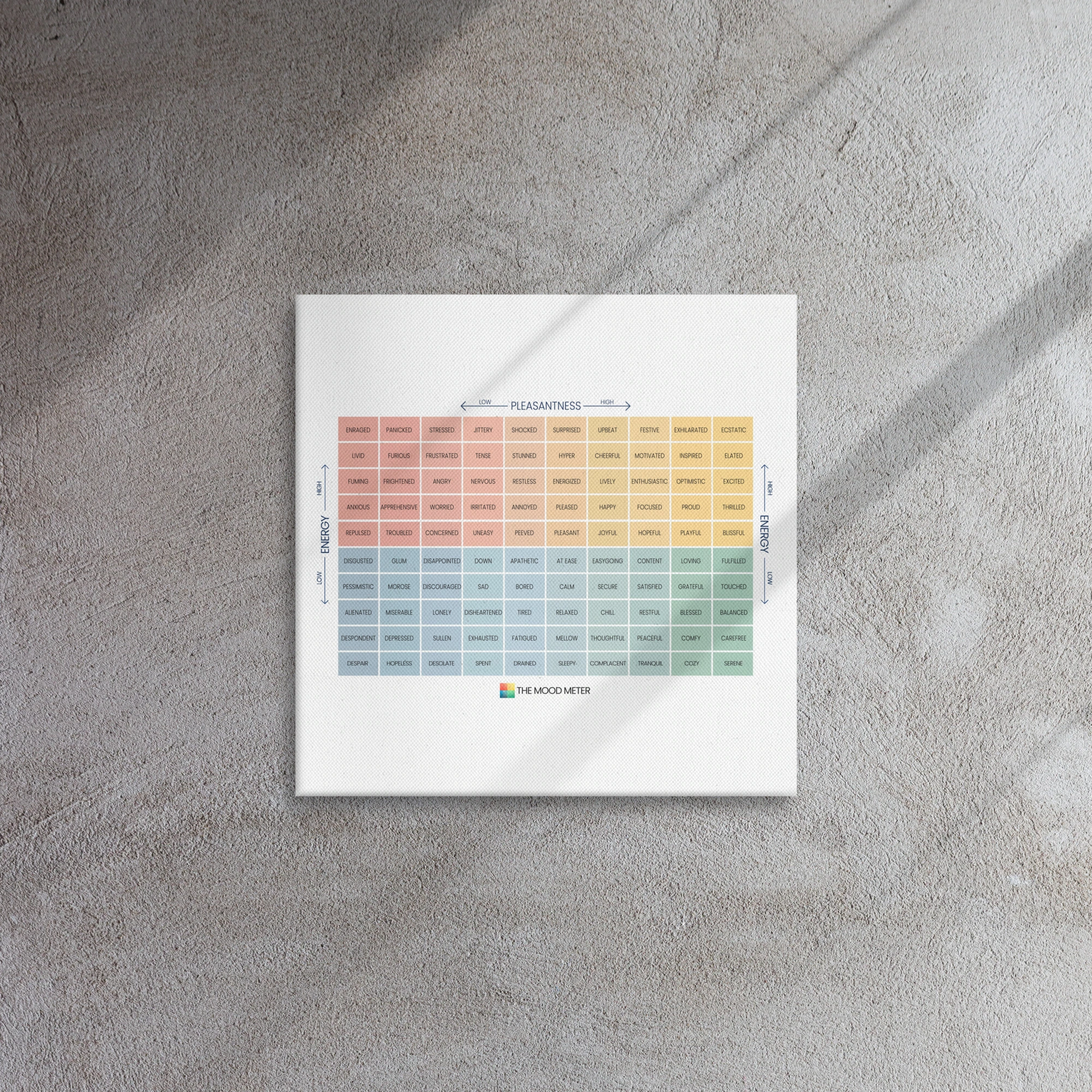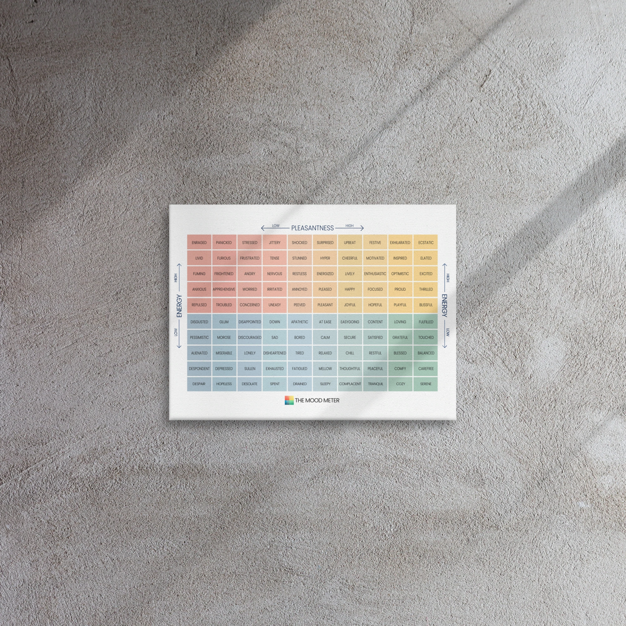 In today’s fast-paced world, emotional intelligence is more important than ever. Research shows that individuals with strong emotional intelligence skills are better equipped to handle stress, build meaningful relationships, and achieve personal and professional success. By integrating the Mood Meter on Thin Canvas into your daily routine, you’re investing in a tool that supports mental health, strengthens relationships, and promotes overall well-being.