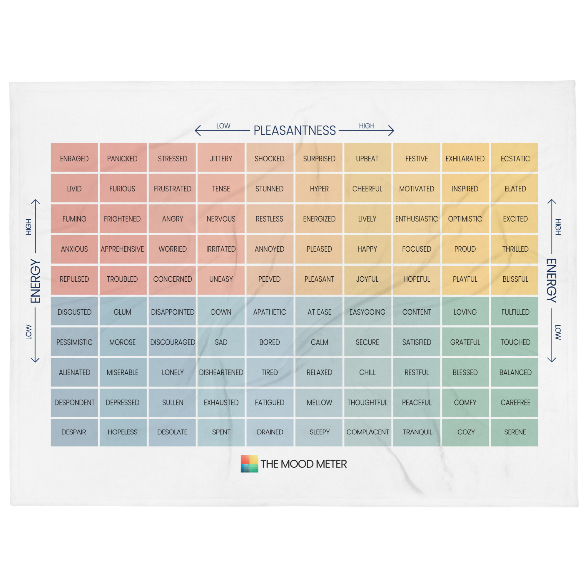 Mood Meter Pillow – A decorative throw pillow that captures the essence of emotional awareness and vibrant design. Place it alongside your Moodmeter Throw Blanket to create a cohesive, mood-boosting corner in your living room or bedroom. Its soft, durable cover and plush insert bring both style and comfort to any seating area.