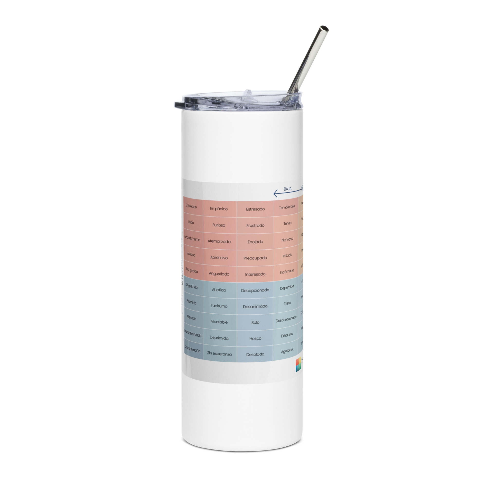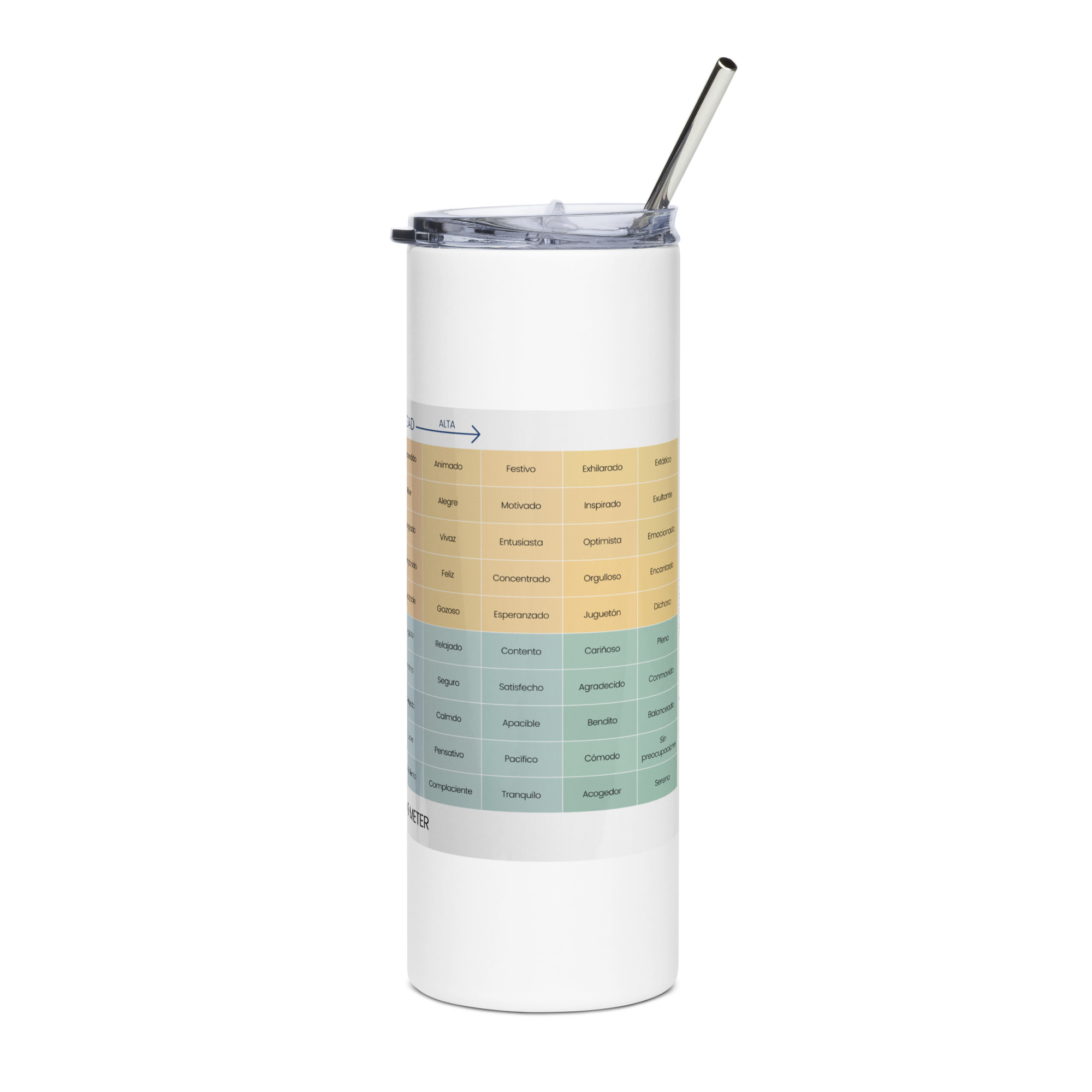 Disfruta tus bebidas favoritas con el vaso de acero inoxidable del Medidor de Estado de Ánimo en Español. Elegante, resistente y ecológico, este vaso reutilizable mantiene tus bebidas calientes o frías mientras acompañas tu día con estilo.