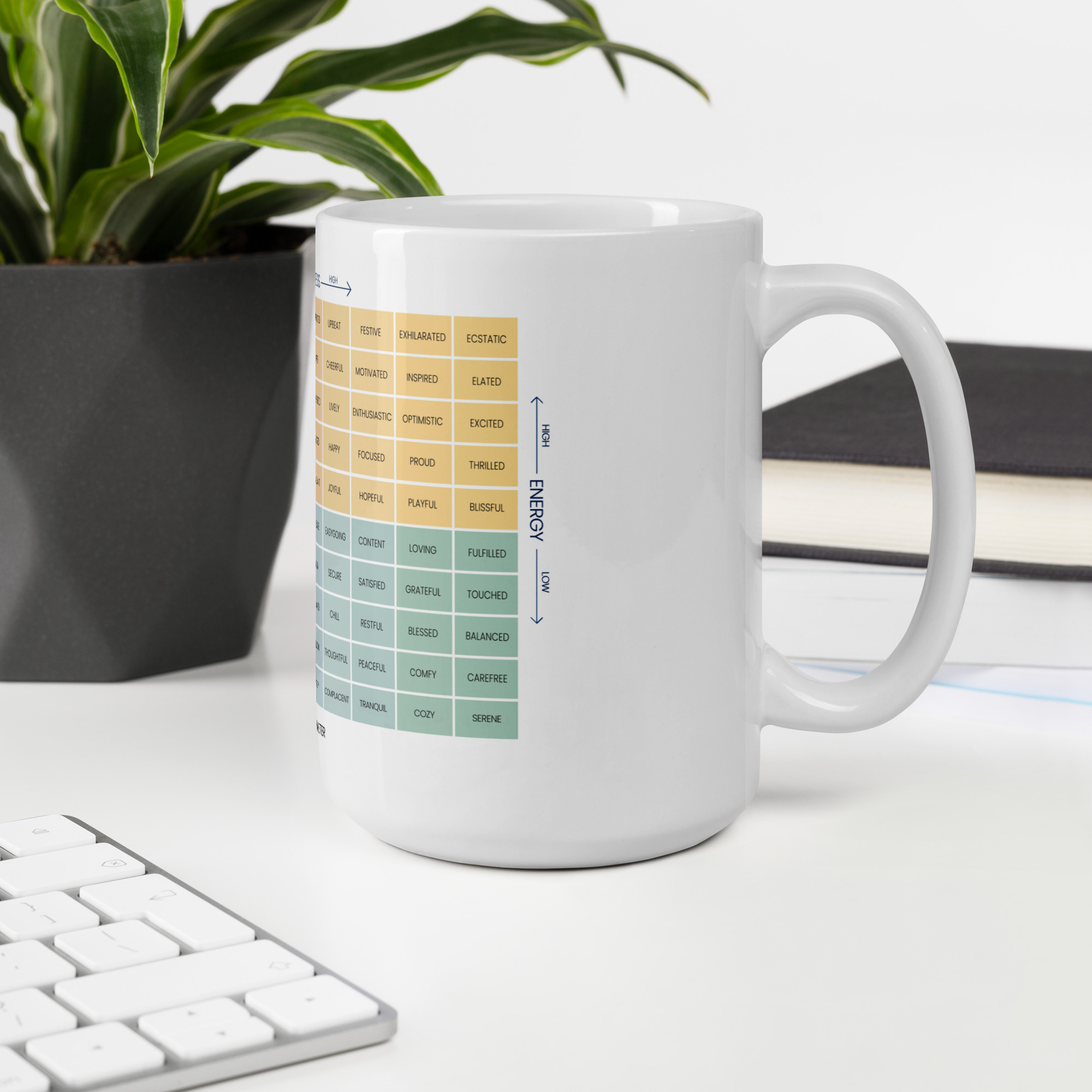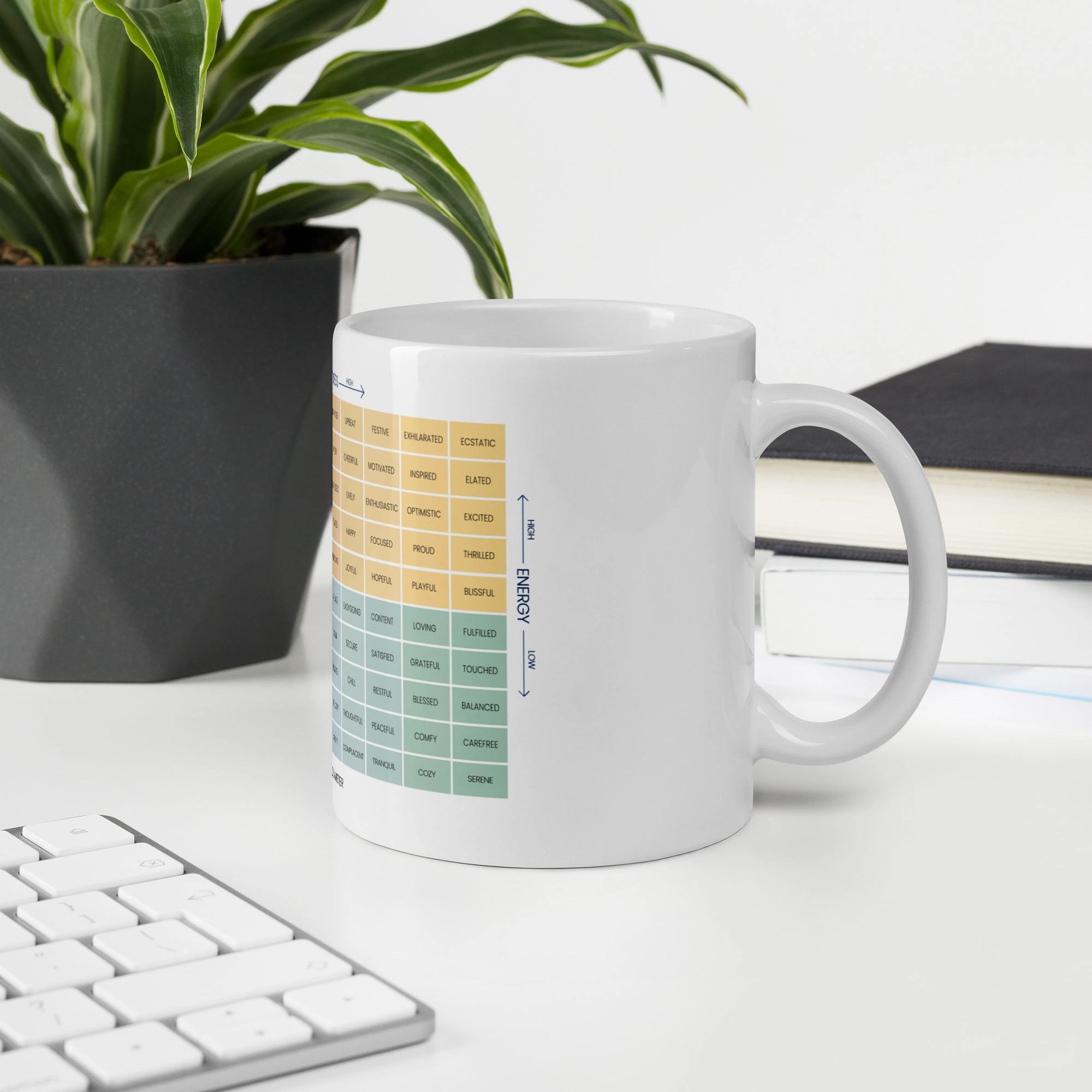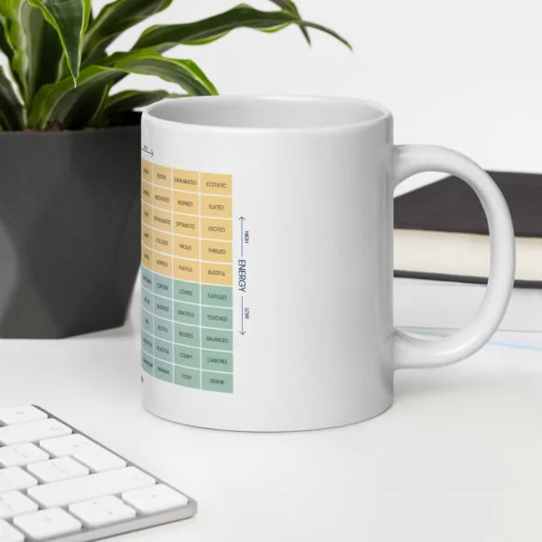 For a colorful twist on your coffee routine, explore the Mood Meter & Ruler Mug with Color Inside. Its vibrant interior adds a pop of personality while maintaining the same durable ceramic quality.