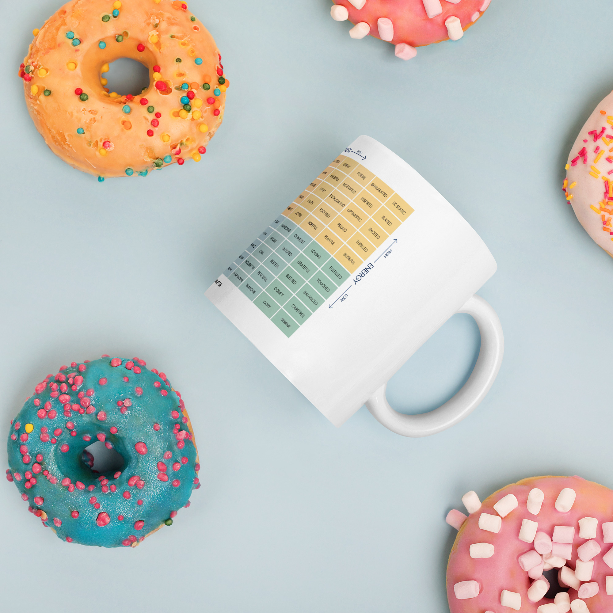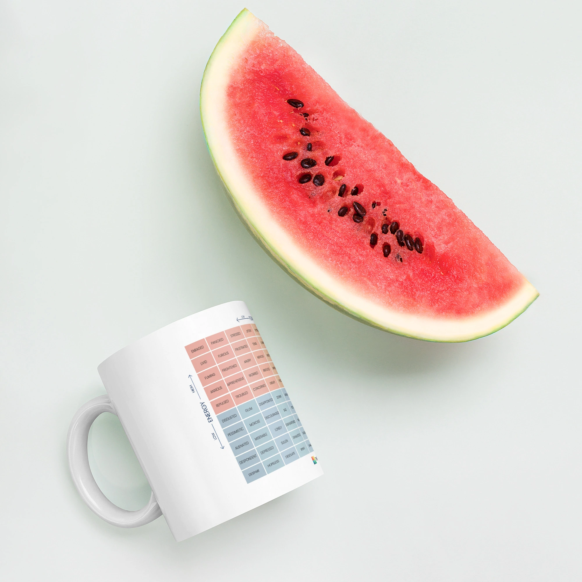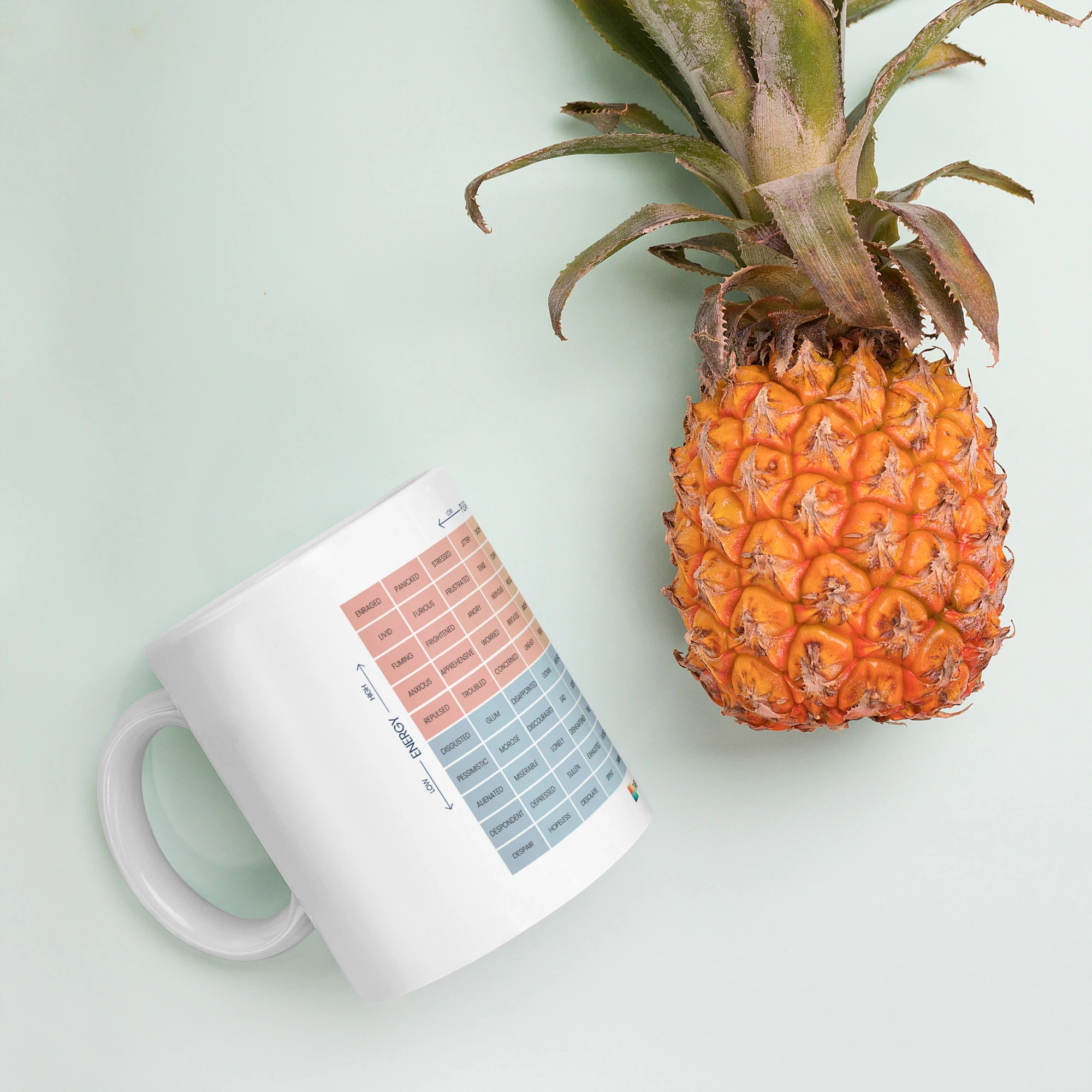 For a colorful twist on your coffee routine, explore the Mood Meter & Ruler Mug with Color Inside. Its vibrant interior adds a pop of personality while maintaining the same durable ceramic quality.
